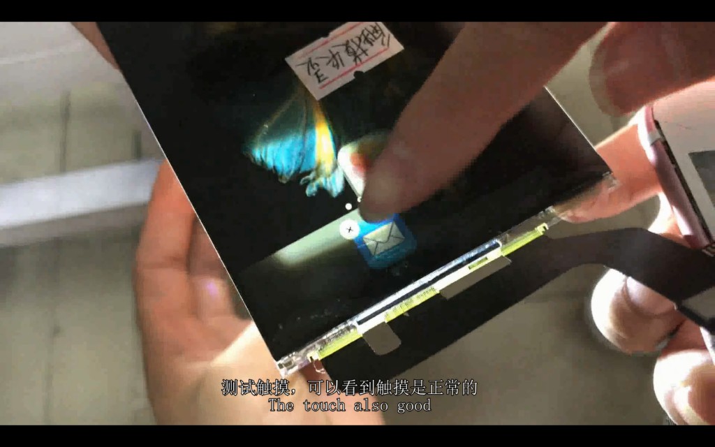 最终压好排线后,进行测试,这一步是为了检查排线是否压好,可以通过测试,这一个iphone7p的屏幕显示和触摸都是完好的,这一次的修复排线是成功的。