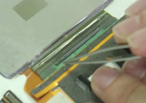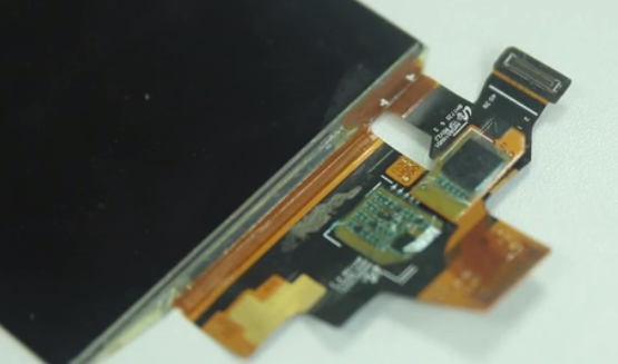 普通屏幕是采用COG的传统封装工艺,如上图屏幕就是一个典型的LED屏,也就是说它的IC芯片镶嵌在屏幕上边的。
