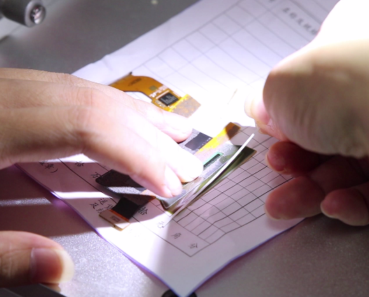 首先测试屏幕是否正常,功能正常则进行玻璃清洗,接着清洗绿排排线,贴上ACF胶,拿出焊烙铁在ACF位置加热。