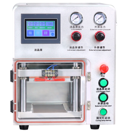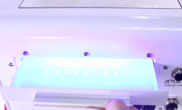除了以上特点之外,更值得一提的是该机器侧边配备了UV紫外灯,这又是干什么的呢?由于OCA胶里面有一种成分,如果没有照掉就会把它返泡起来。照射时间理论上1-2分钟即可,但是在照射之前必须要全部贴合完毕并除泡完才能可以进行操作。
