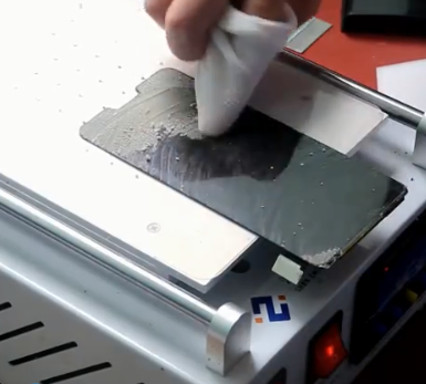 ◆使用传统手工搓胶,把屏幕放在加热台上加热,清除后使用清洗剂清理屏幕;