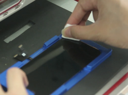 第三,贴合。这里小编建议大家养成一个习惯,在盖上盖板前用无尘布擦拭一下液晶屏,避免有灰尘或其他杂物粘附在上面以造成气泡产生。