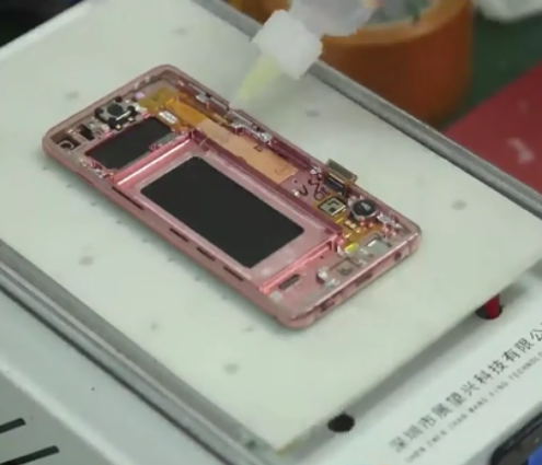 首先使用OCA薄片+酒精拆框。把屏幕放在加热分离机上,接着在手机边框点上酒精后使用OCA薄片慢慢拆分中框,如果遇上胶硬的情况可以使用塞尺。