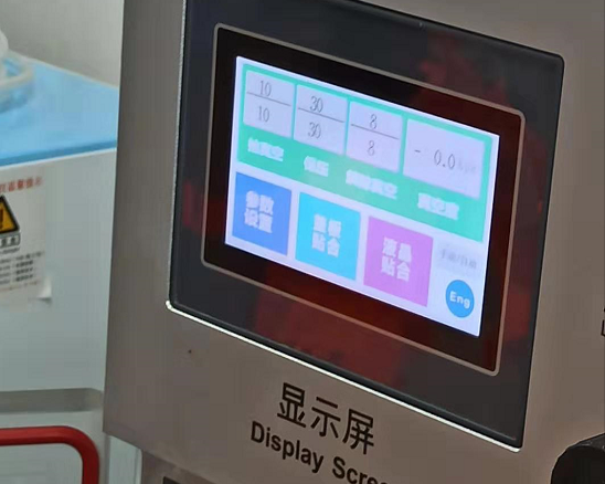 曲面贴合机出厂的标准参数设置,抽真空为10,保压为30,解除真空为8,压力为0.4和0.6。