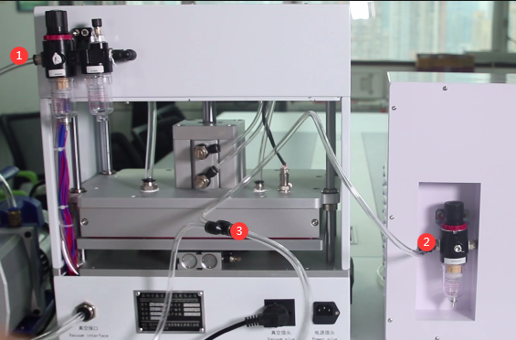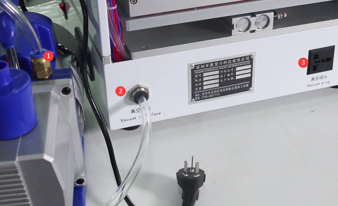 贴合机的真空管接口上,然后真空泵的插头插在