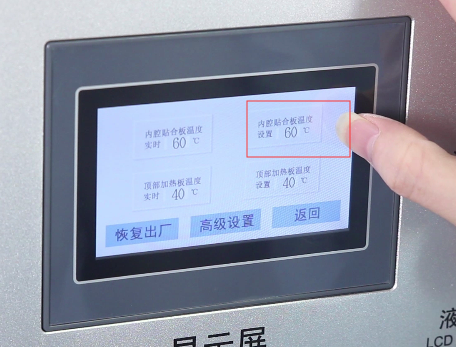 在参数设方面,其抽真空、保压、解除真空参数设置与直面屏一样,需要注意一点的是,参数设置选项中的“内腔贴合板温度”是根据所用OCA胶温度而设置的,我们这次所使用的OCA胶建议调到60度。
