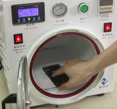 最后要说的就是除泡,不管是压盖板还是液晶屏,贴后之后有无气泡都建议进行除泡,如果直接贴合压屏就难以除掉或者成为死泡。其中,曲面屏除泡时间为30分钟,全部贴合后再照射紫光,这样可以有效防止屏幕返泡。