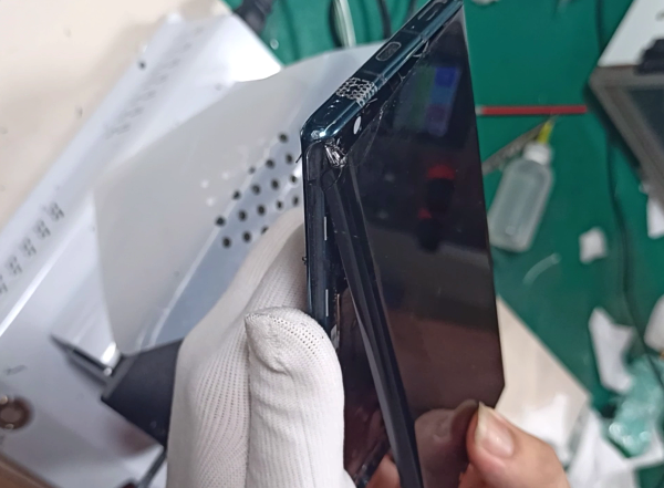 1、带框分离盖板。如果屏幕边缘爆碎或局部碎得比较严重的情况下,建议先加热屏幕将盖板分离下来再分离中框,这样可以避免碎玻璃渣子损伤内屏;