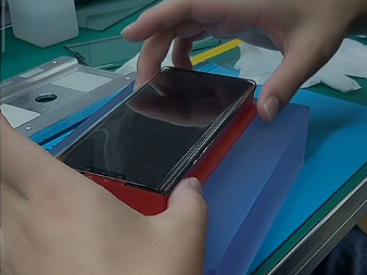 不过,为了避免拉胶,业内有人在贴合盖板时在曲面部分打一层uv胶,当然,我们贴合时采取的方式是不打油而是对模具进行了特殊处理;此外,贴合前一定要使用无尘布擦拭一遍盖板以避免有灰尘黏附于表面从而导致气泡产生,这样贴合屏幕不会有气泡产生。