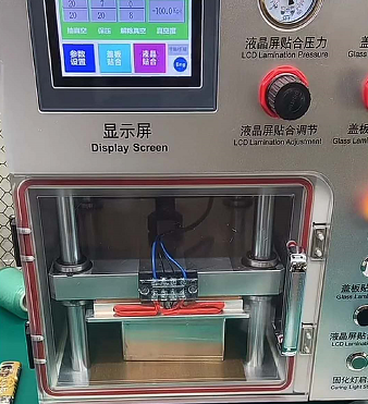 首先是盖板贴合,为了保证贴合精度建议使用模具进行对位,通过用OCA定位模具将oca胶按在底座硅胶上,然后将新盖板定位于盖板模具上,然后立刻启动曲面贴合机进行贴合再除泡。