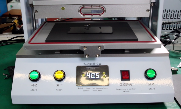 使用真空贴合机进行贴合需要有一个相当干净的环境,先是工作台面就要保持干净整洁,也可以使用无尘工作台进行贴OCA干胶;其次就是温度,尤其是温度低的冬天,OCA干胶的粘性会下降很多,这种情况下我们可以在贴OCA胶时先预热一下从而增加胶的粘性,而机器则可以通过调整机器温度参数来提高压合效果。