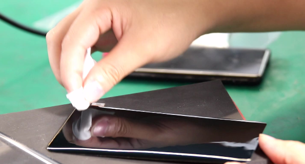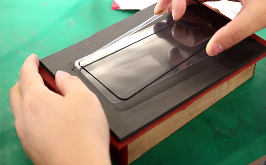 上OCA胶看似很简单的一步,但是如果上胶错位就得返工,所以最好使用对位模具进行对位贴合,这样既能节省对位时间又能保证贴合成功率。不过,在选材上建议用质量好的OCA胶如原厂胶,而带OCA胶的盖板很有可能胶过期或者胶质量差,贴合后会气泡多、大气泡导致无法脱泡。