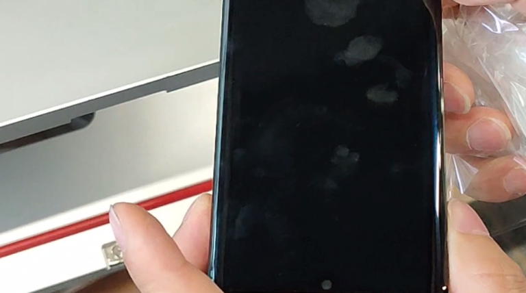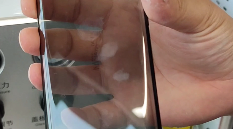 由于P30P是触摸不灵需要贴TP,所以下面要将偏光铲下来。P30P屏幕偏光分别有一层黑色和一层透明,铲透明层偏光时要注意力度,否则很容易在屏幕表面残留凹痕。偏光完全分离下来后用卷胶棒卷胶,卷胶速度调到最慢,卷完胶后直接用酒精清理屏幕。