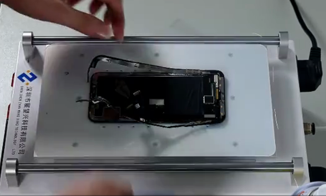 首先将破损的屏幕拆下来,进行拆框,除胶等工作。除胶时一定要将液晶屏上的残余的胶处理干净,否则会影响后期的压屏质量。