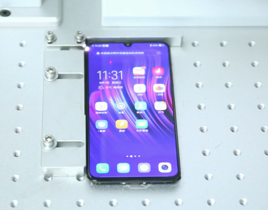 激光拆屏机就轻松简单多了,只要把屏幕放上夹条,调出对应图纸,点击自动对焦,确认红光标即可。