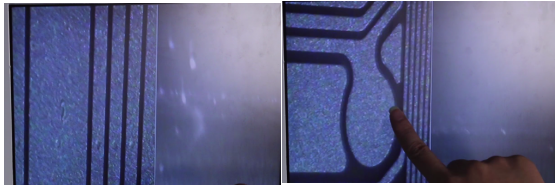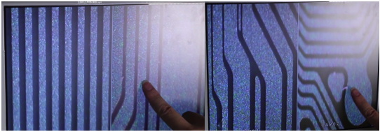 压排机上的镜头先找到右边排线的纵向和横向位置,如图1中的四根排线和符号的位置。同样,左边也是找到如图2的四根线路和符号。