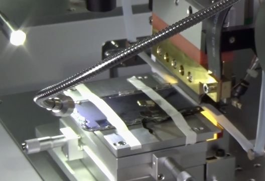 不过,压排最重要的一步是对位,在对位前先准备一个铁片垫于排线底部,如果没有铁片会有不一样呢?没有铁片垫底部时排线正面显示并没问题,但侧面会有波浪状。