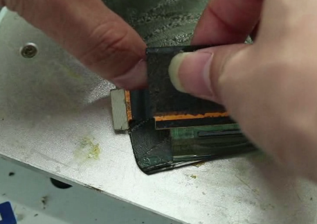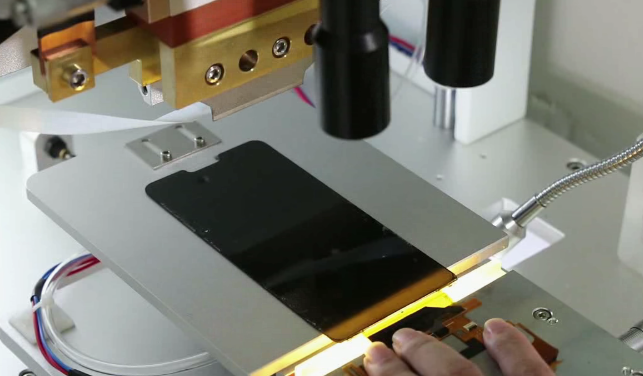 压排机压手机绿排应该怎么做呢?目前采用COF封装工艺的机型有X21\X23\R15等,它们的修复手法可以说是一通百通,掌握好当中一个型号的操作手法就基本可以了。首先要把屏幕分离下来,翻排线,撕背贴、撕排线,需要注意的是拆排线时要顺着排线线路的方向去撕,分离机加热温度在120度左右。