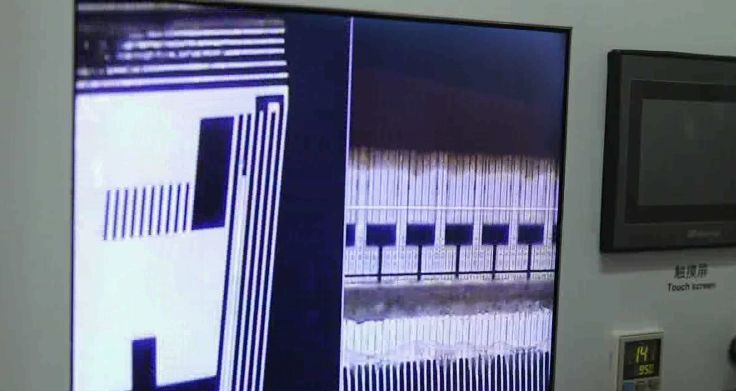 压排机性能大增,线路在高倍镜头照射下清晰可见,加上可通过移动精度达毫米级别的微调丝杆调节检查排线对位情况,很快就能完成排线对位压合。